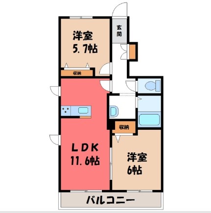 ☆小山市暁☆6.7万円☆2LDK☆