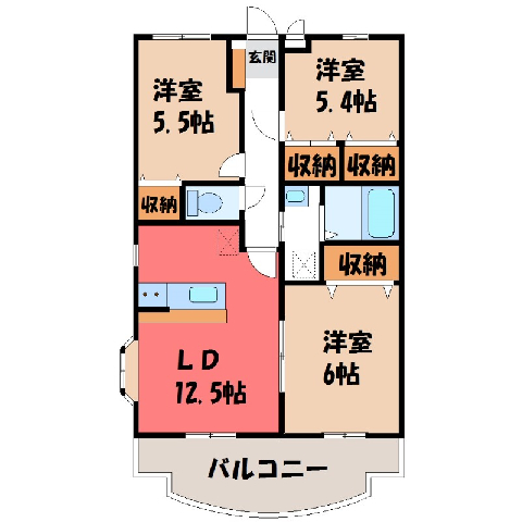間取 / 専有面積 3LDK(S) / 68.04m2 間取り詳細 LDK12.5/洋室6/洋室5.5/洋室5.4 築年月 2003年3月築