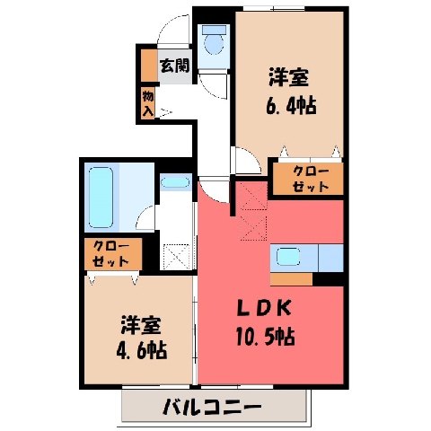 間取 / 専有面積 2LDK(S) / 50.91m2 間取り詳細 LDK10.5/洋室4.6/洋室6.4 築年月 2022年12月築