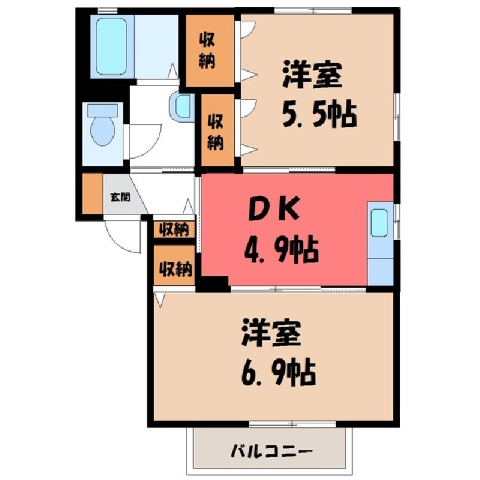間取 / 専有面積 2K / 42.7m2 間取り詳細 K4.9/洋室5.5/洋室6.9 築年月 2003年11月築