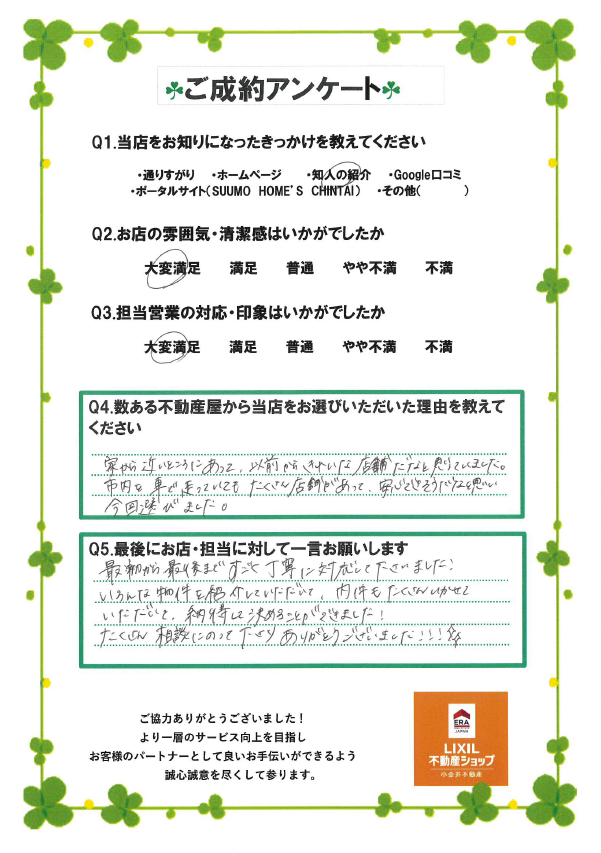 この度は、小金井不動産をご利用いただきましてありがとうございました!