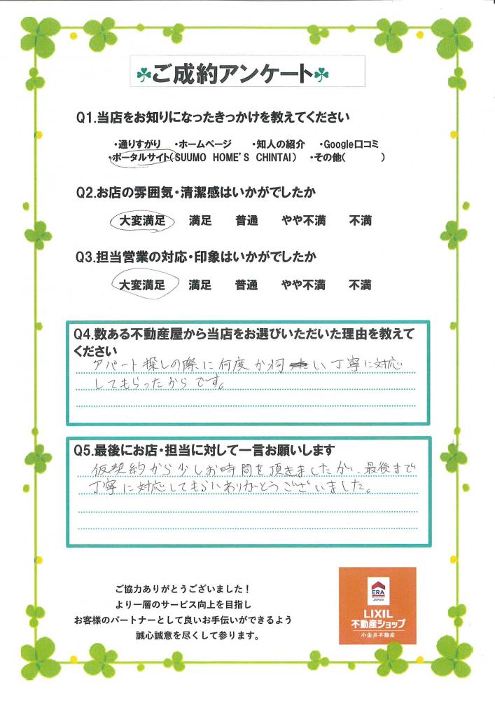 この度は、小金井不動産城東店をご利用いただきありがとうございました。
