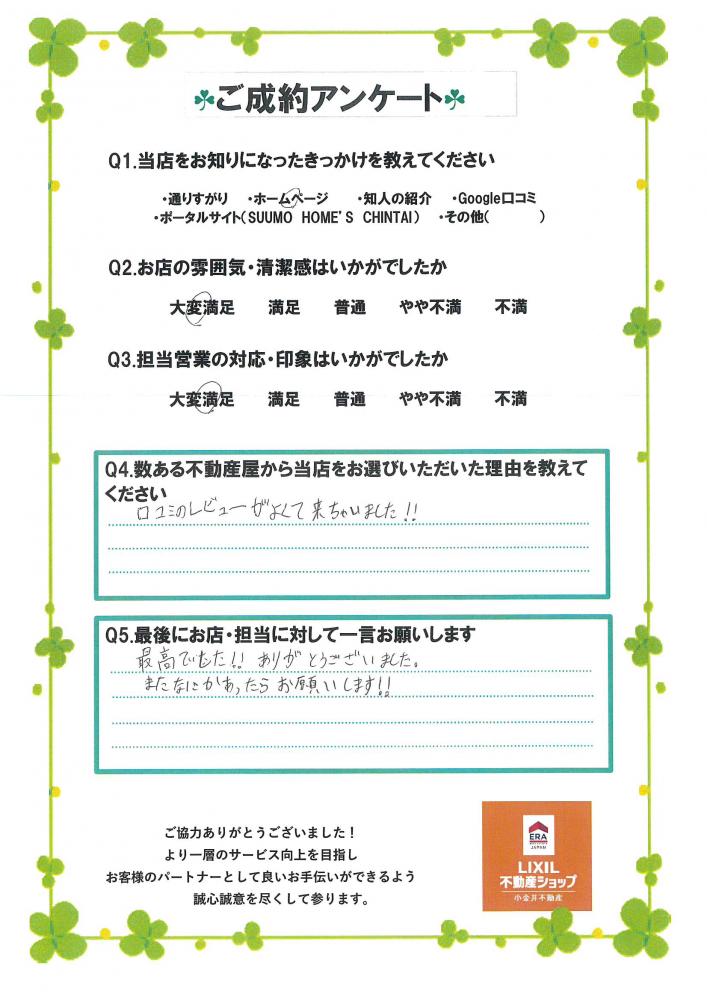 内見の際、楽しくお話させていただきありがとうございました。