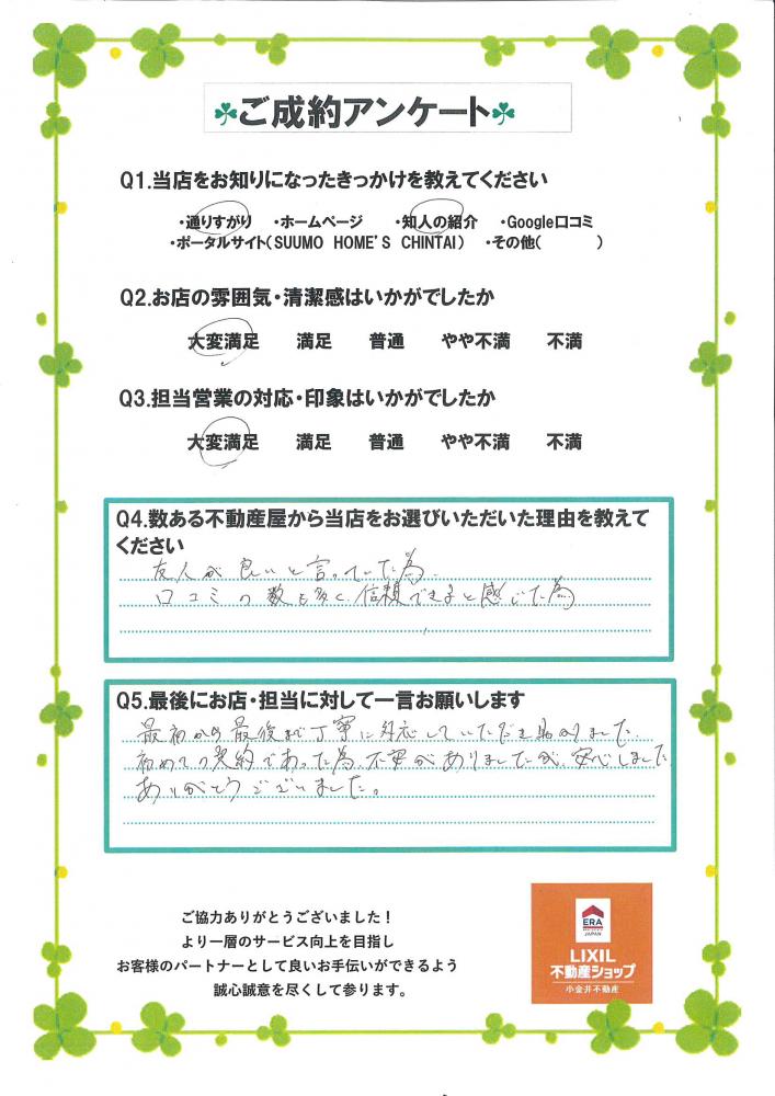 この度は小金井不動産城東店をご利用いただき、誠にありがとうございました!